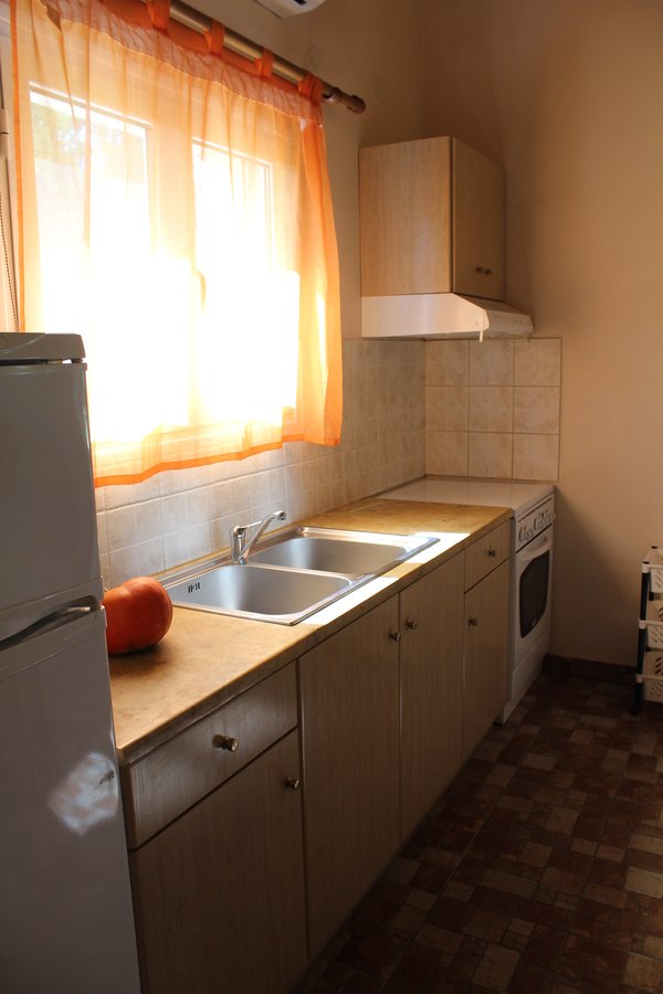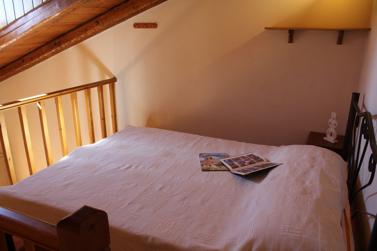 There is a bedroom with double bed, an attic with queen bed and a living room with one person bed. The apartment has a fully equipped kitchen with oven, fridge and anything you may need, a bathroom with shower and washing machine and a relaxing terrace in front with a view of the garden.
