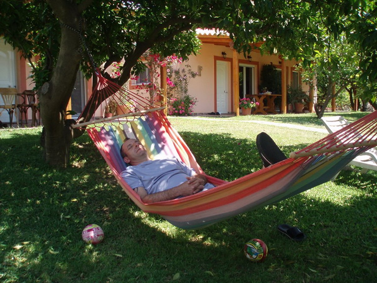Cadre reposant et magique dans le beau jardin arboré de Tassos. Hôtes franchement exceptionnels et très attentifs (francophones et polyglottes). Bien situé pour des visites. Adapté pour les enfants ados (volley, ping pong, pétanque....) Belle parenthèse en Grèce.